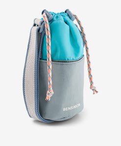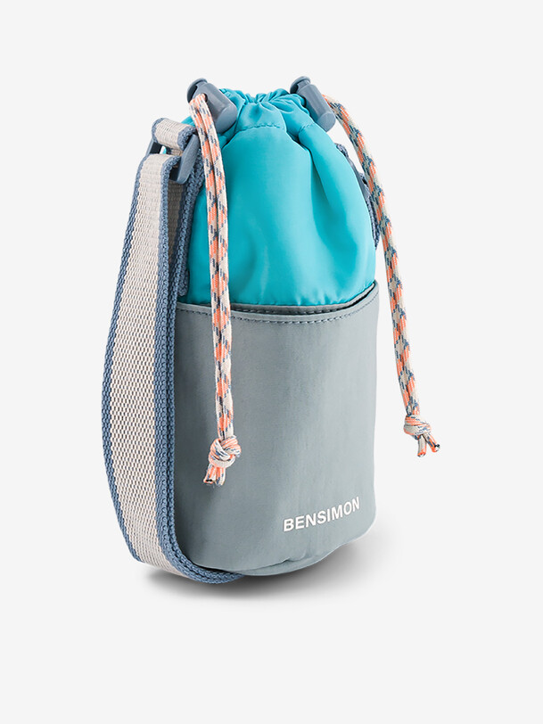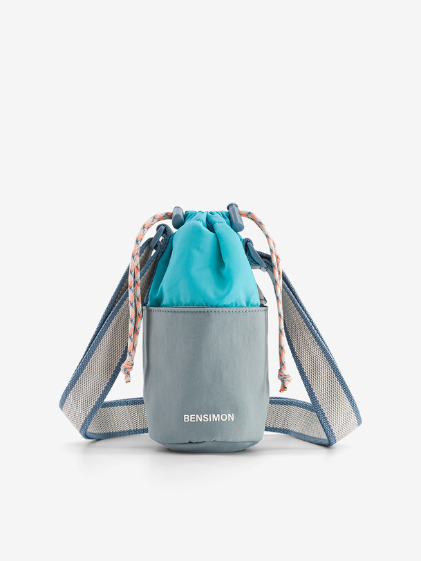 Bottle bag. Capacity for a 75 cl bottle. It features one front pocket and an adjustable strap. Zipper closure. Dimensions: length 8 cm, width 8 cm, height 20 cm.