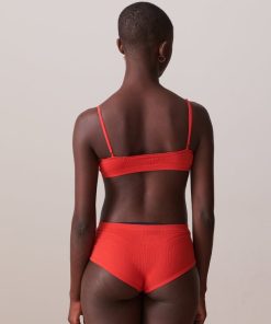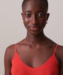 Ribbed bralette with a rounded V-neck and scalloped edge. Thin, adjustable straps. Diagonal ribbing.