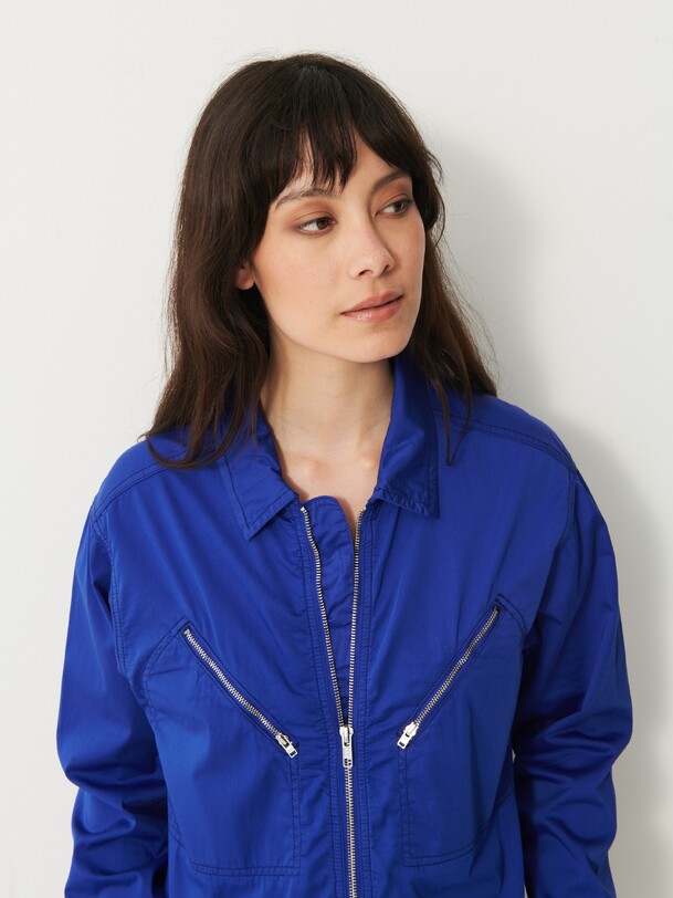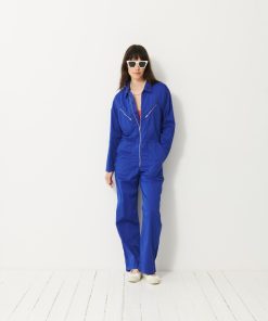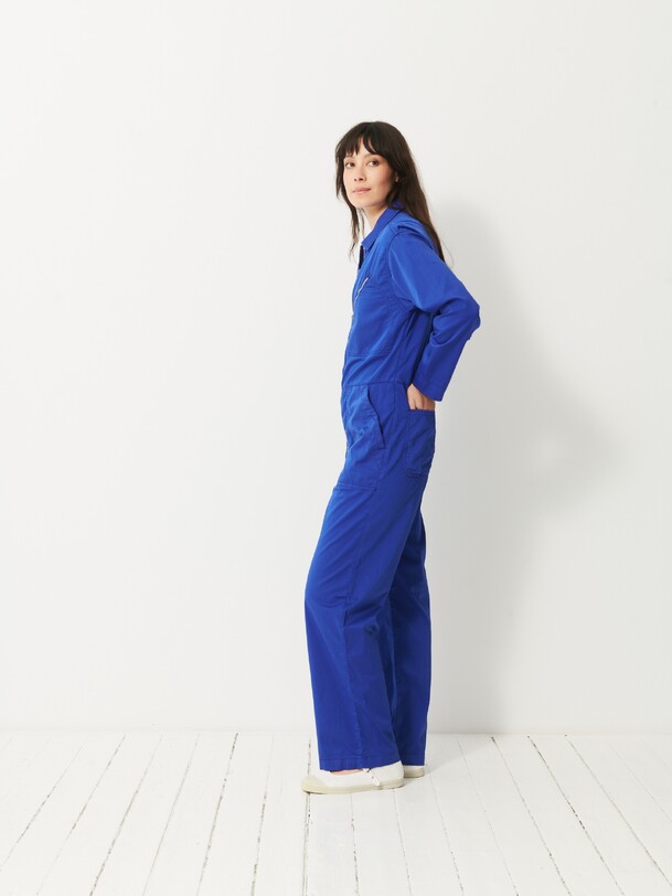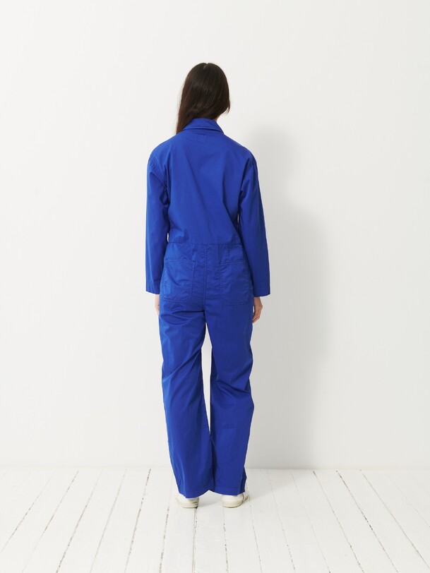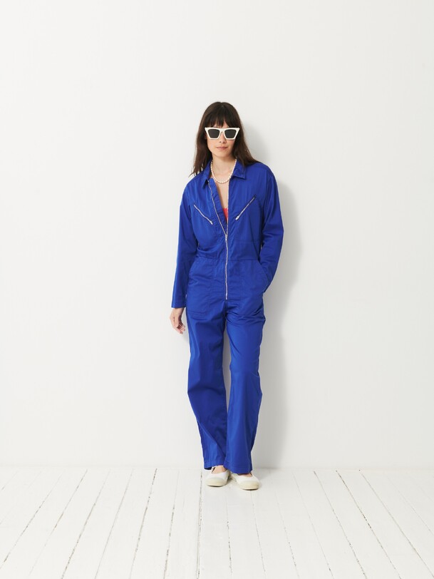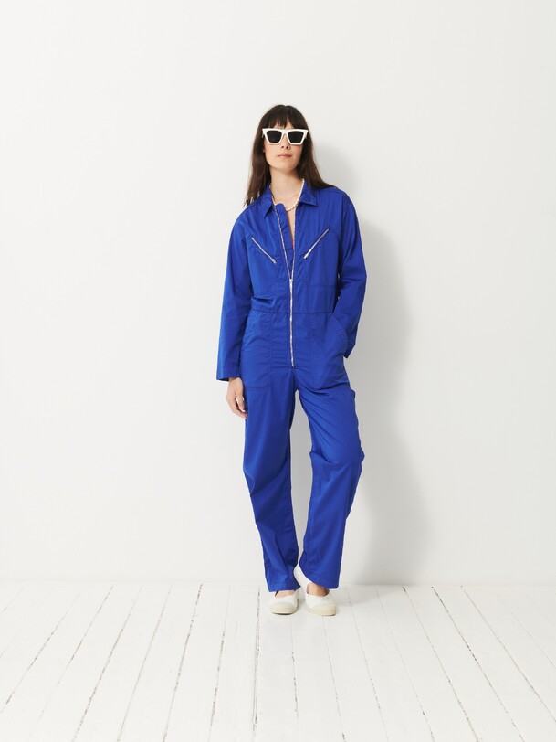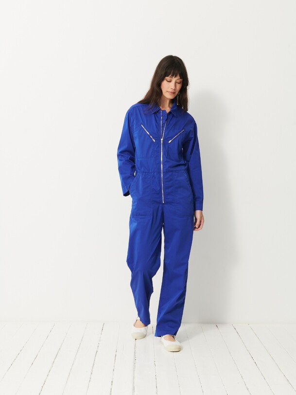 Inspired by the workwear coverall, the Dwaina Jumpsuit features a straight cut. Zippered pockets on the chest and stitched pockets below the belt are highlighted by subtly contrasting topstitching.