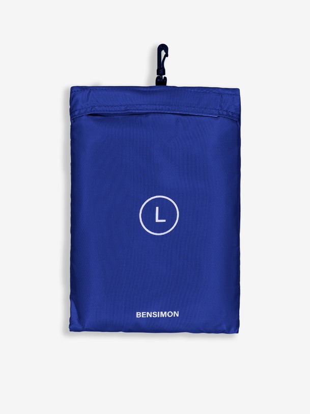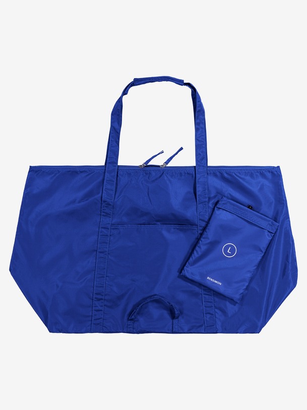 Extra Bag L retractable bag with large capacity. It folds into a small pouch. It has a zipper closure and 1 inside pocket. Dimensions: length 56 cm, width 28 cm, height 45 cm.