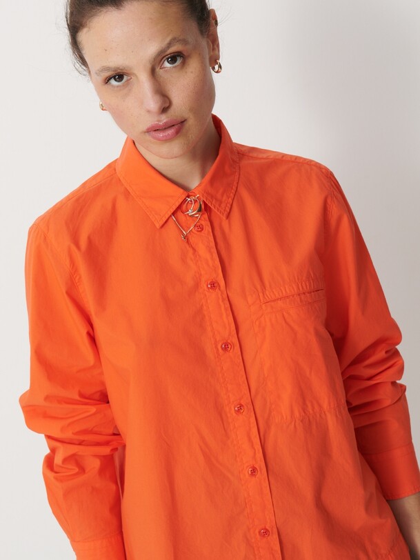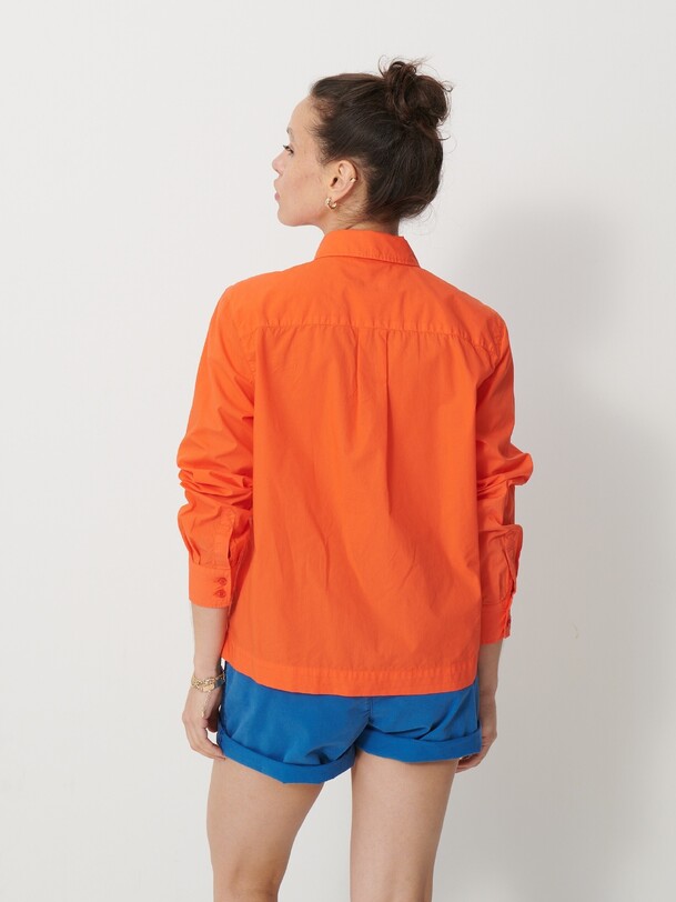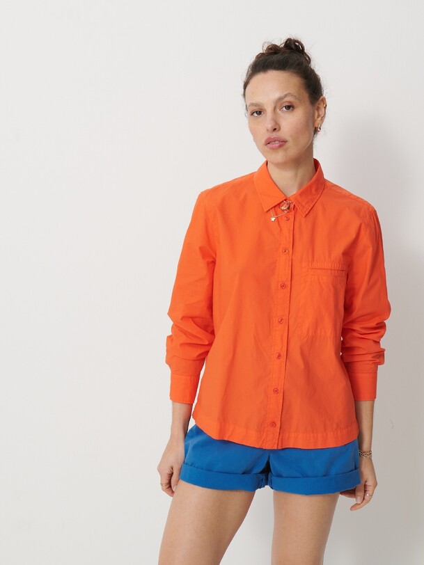 The Galicia shirt is a wardrobe staple. It features a boxy shape made from printed viscose. It boasts a classic collar and is fastened at the front with ornate buttons made from recycled polyester. Its long sleeves are finished with buttoned cuffs.
