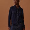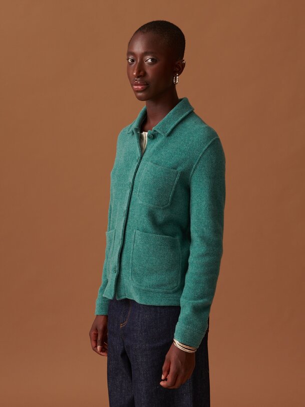 The Golta jacket combines utility and elegance in a tailored cut. Buttoned at the front, it features a classic collar, patch pockets and long sleeves finished with buttoned cuffs for a clean finish. Made from double-sided knit fabric, it offers warmth and structure without weighing down the silhouette. A versatile piece, ideal for layering over a shirt or light jumper.
