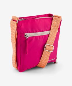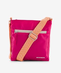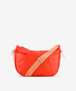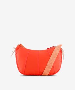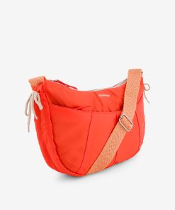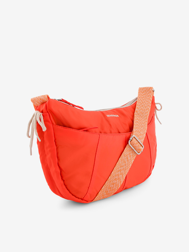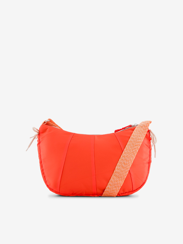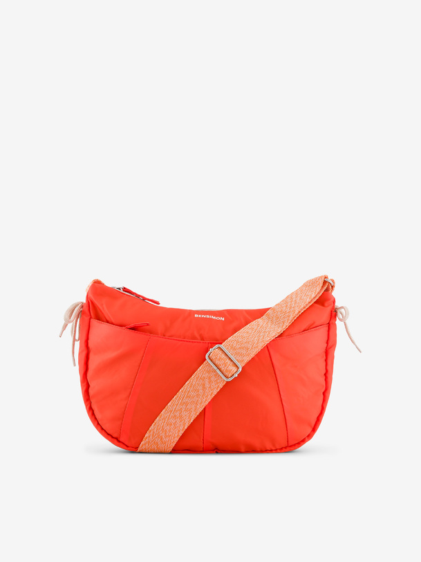 Medium-sized Half Moon bag. Large front zipped pocket and one interior zipped pocket. Drawstrings to tighten the sides. Dimensions: length 34 cm, width 5 cm, height 22 cm. Zip closure.