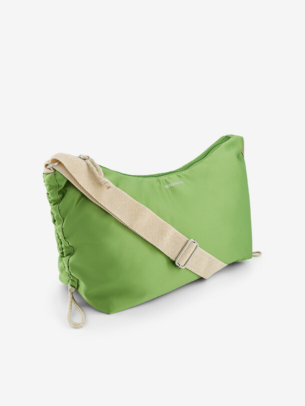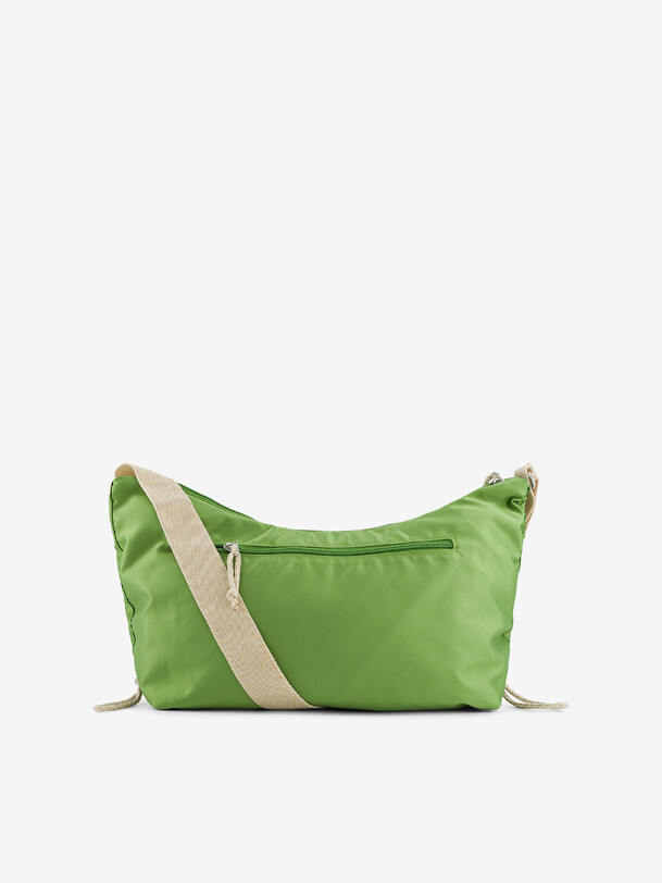 Medium-sized bag with a large zippered pocket on the front. An interior zippered pocket and a zippered pocket on the back add functionality. Drawstrings allow you to tighten the sides to adjust the volume. Dimensions: 32 cm long, 15 cm wide, 26 cm high. Practical zipper closure.