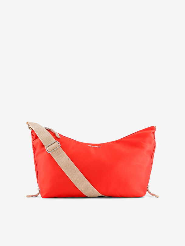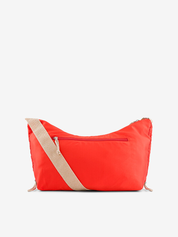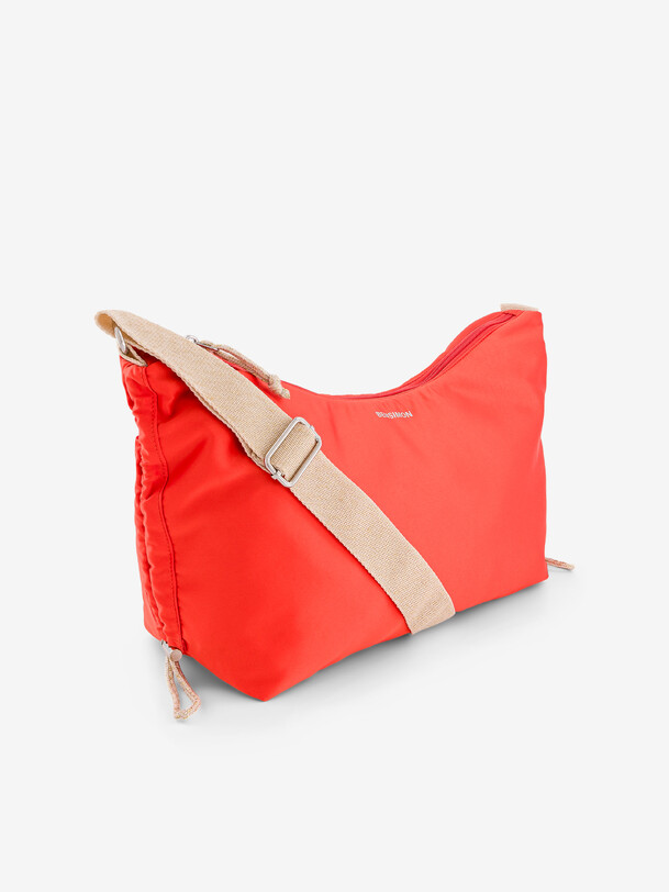 Medium-sized bag with a large zippered pocket on the front. An interior zippered pocket and a zippered pocket on the back add functionality. Drawstrings allow you to tighten the sides to adjust the volume. Dimensions: 32 cm long, 15 cm wide, and 26 cm high. Convenient zipper closure.