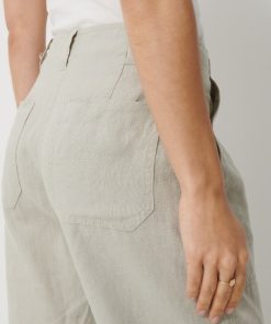 The Hugues trousers feature a straight-leg design with front patch pockets. The waistband is flat with belt loops. They have back patch pockets and a folded hem. Inspired by multi-pocket military trousers.