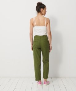 The Ipanema trousers are a pair of linen cigarette trousers featuring Italian front pockets and patch pockets at the back. They fasten with a zip fly and are equipped with a belted waist that includes belt loops.