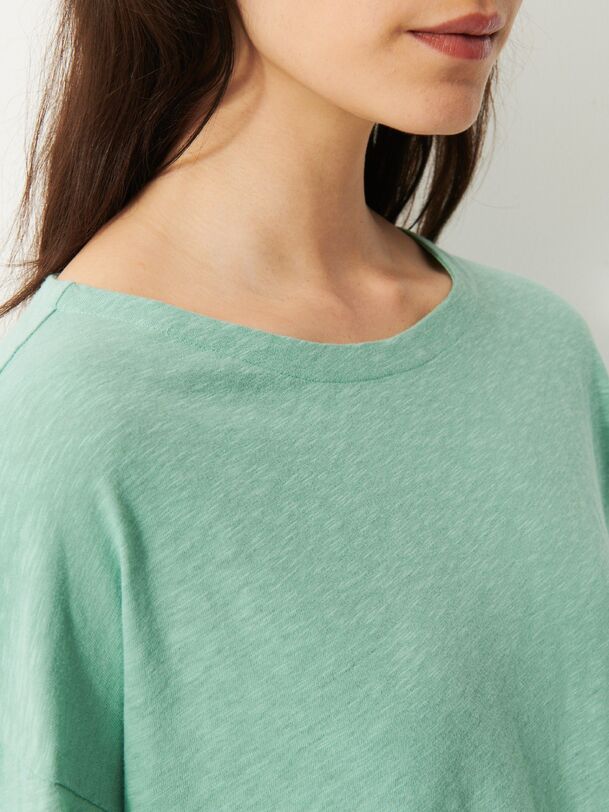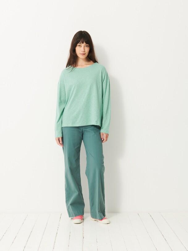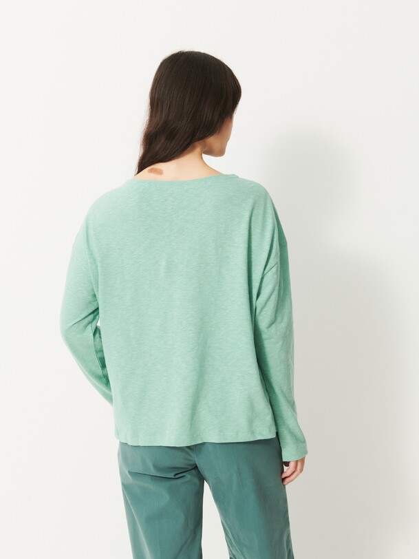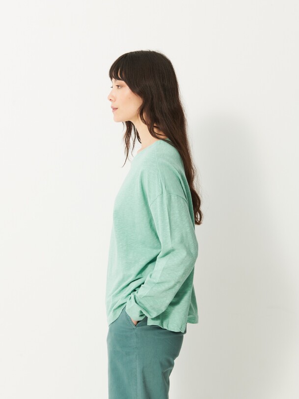 The Loick T-Shirt features a loose, straight fit with long sleeves. It has a wide armhole and the inside finish offers a contrasting colour. Inspired by the traditional Breton top.