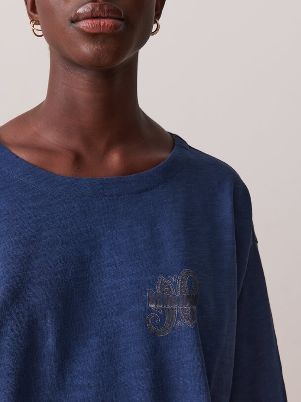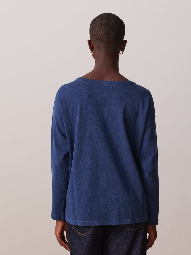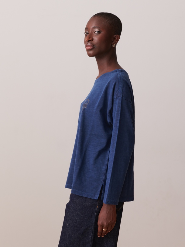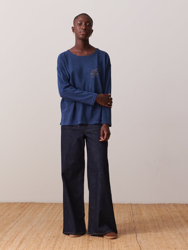 The Loick t-shirt opts for comfort without sacrificing style: heavy slub jersey, a loose cut and dropped shoulders for an easy, contemporary fit. Its enzymatic wash gives a desirable vintage grain, gently worn as if it has already lived a thousand adventures. Shown here with raw denim, it confirms its place as the wardrobe’s go-to essential.