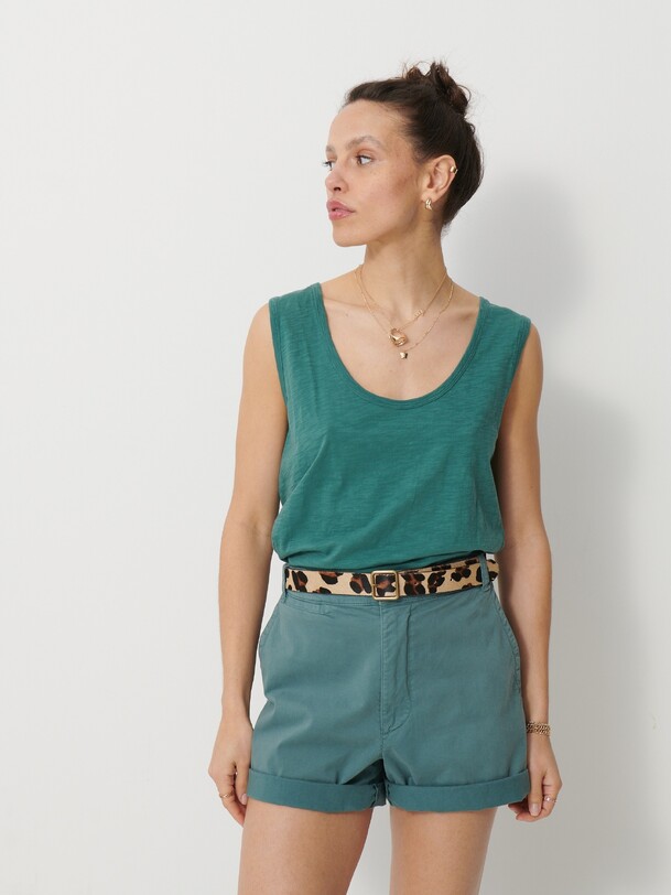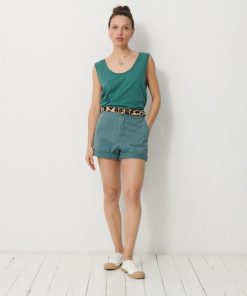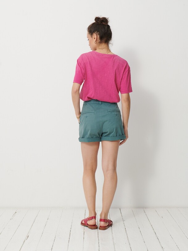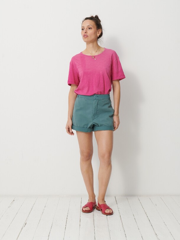 High-Waisted Lorenzo Shorts in Gabardine. Belt loops. Italian pockets at the front and buttoned welt pockets at the back.