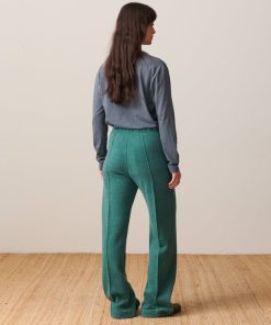 A trouser that favours comfort without sacrificing elegance. Knitted in double-face knit, the Luckylon is soft on the inside and provides enveloping warmth. Its high, snug waistband naturally defines the waist, while the long, straight leg lengthens the silhouette. Discreet side pockets set into the seams add practicality without weighing down the line. Easy to pair — a lightweight jumper, a structured jacket or sneakers — it embodies everyday softness with an impeccable look.