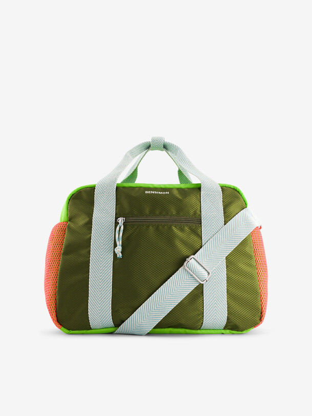 The Manchester Weekend Bag is designed for a large capacity with a practical zipper closure. It features a total of 5 pockets: a large zippered pocket, a zippered front pocket, two side pockets, and an interior zippered pocket, providing optimal organization. It is equipped with a double handle as well as an adjustable strap for easy carrying. Its dimensions are 34 cm long, 22 cm wide, and 27 cm high.