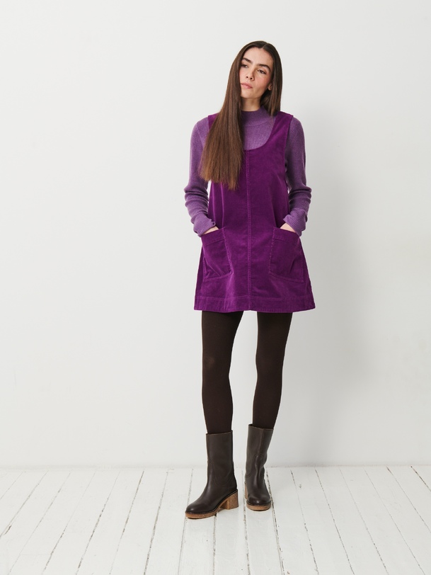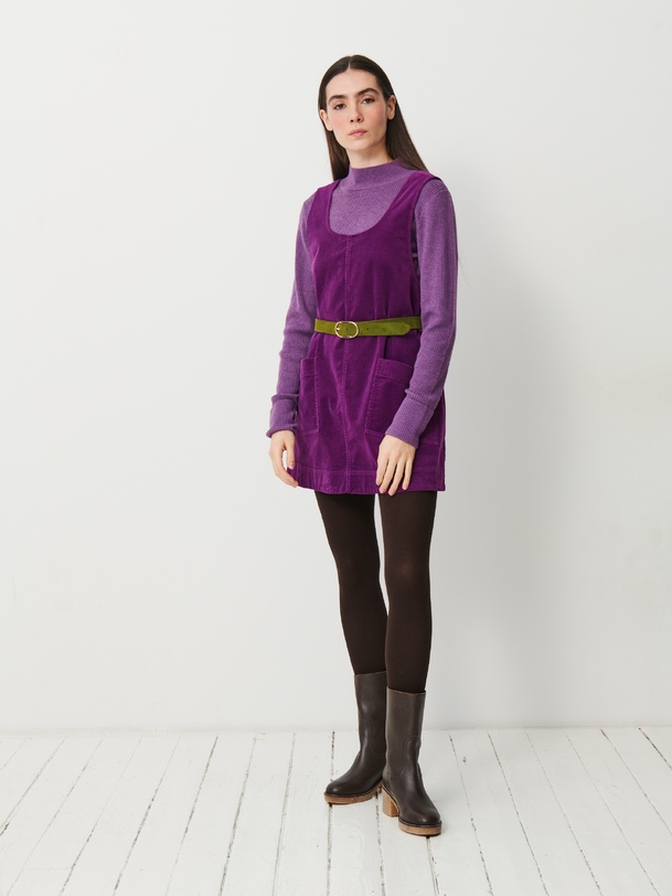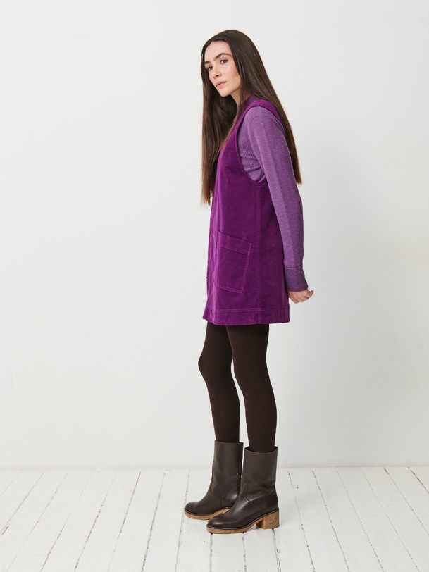 The Nadina dress naturally echoes the pinafore silhouette: straight cut and above-the-knee length for an easy, feminine fit. The straps are adjustable with buttons, allowing you to adjust the height to suit your desired look. Made from cotton, it is lightweight, comfortable and easy to wear — on its own or layered over a shirt, turtleneck or jumper, with tights and boots for an instantly chic and casual outfit.