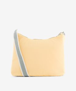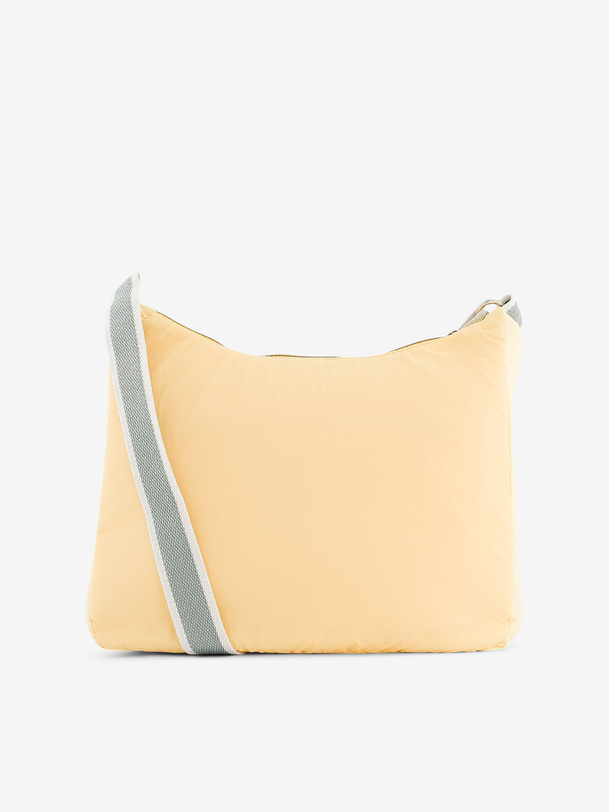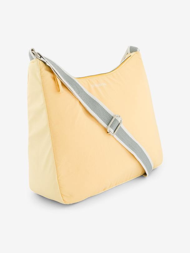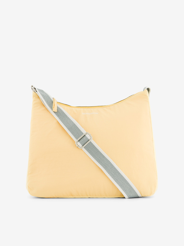 Soft crossbody or shoulder bag with two zippered pockets. It has a large zippered pocket and a zippered pocket inside for added security. It has a zipper closure.