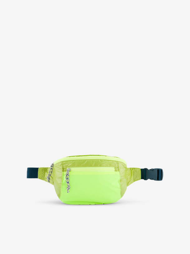 The Newton Banana Bag features a large zipped pocket. One front zipped pocket and one interior zipped pocket. Adjustable handle. Dimensions: 29 cm long, 8 cm wide, and 16 cm high. Zip closure.