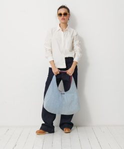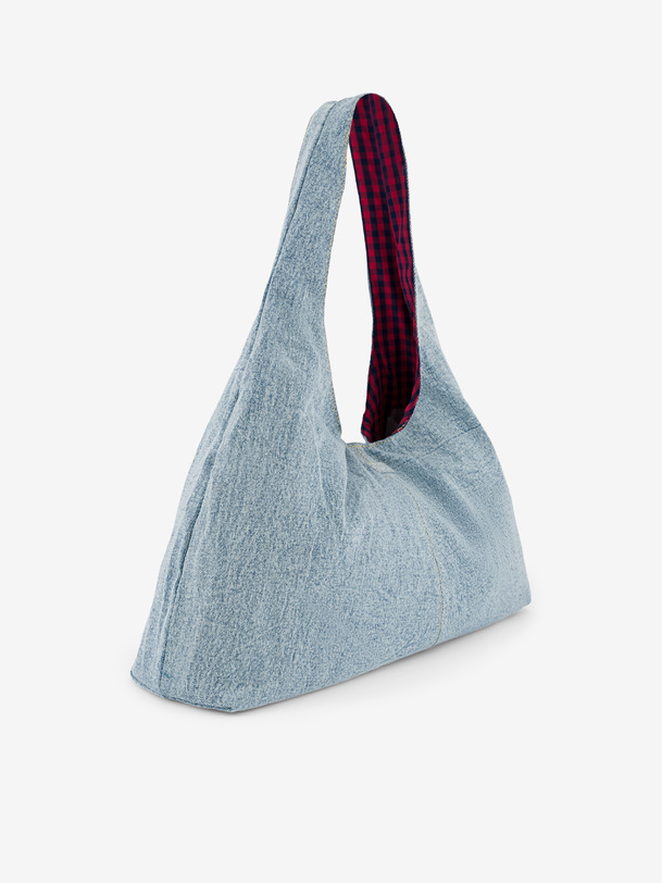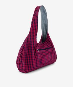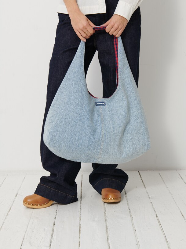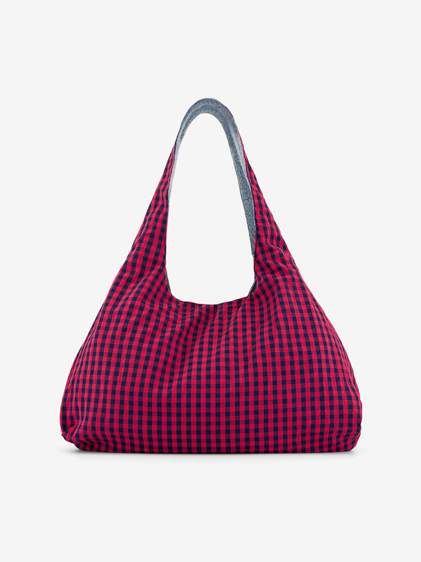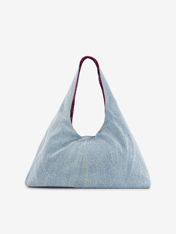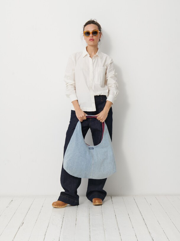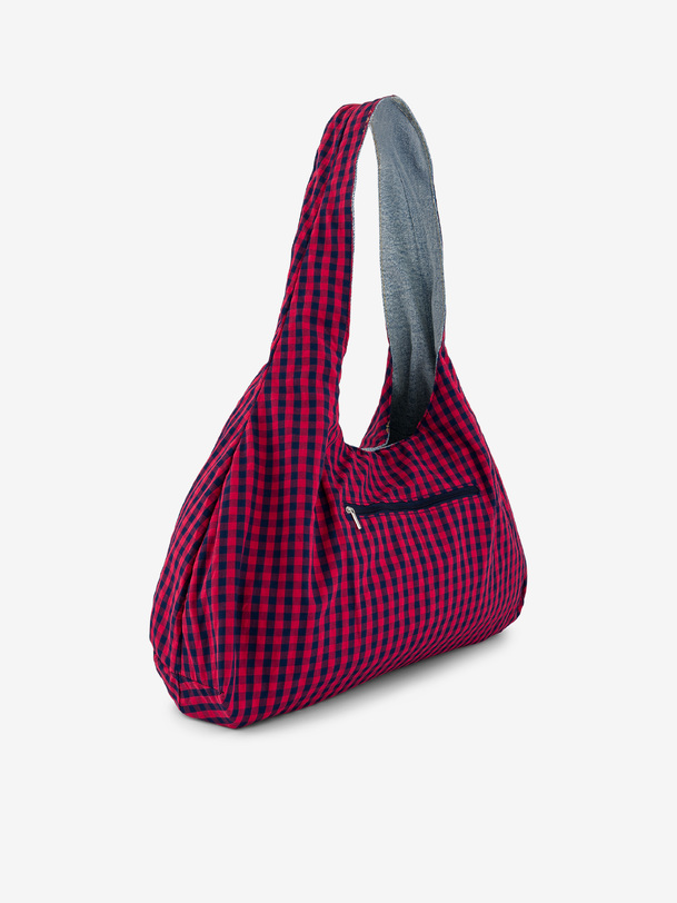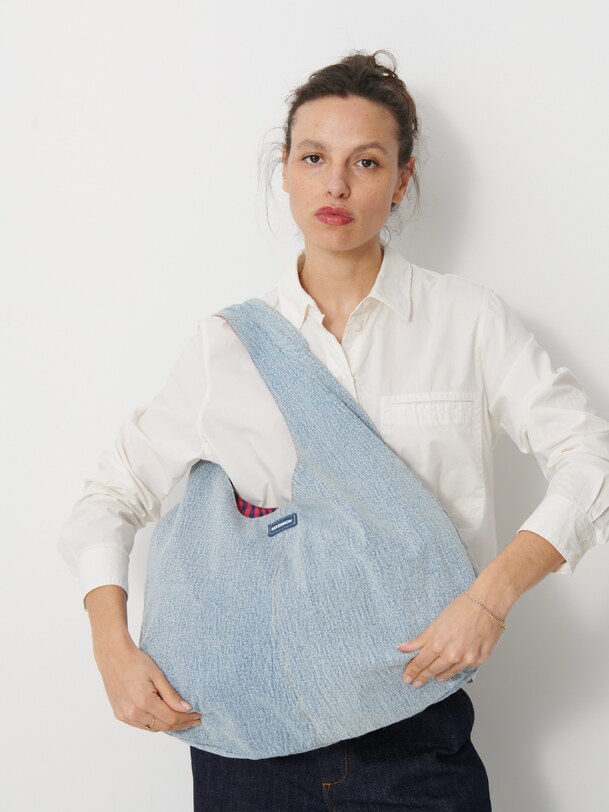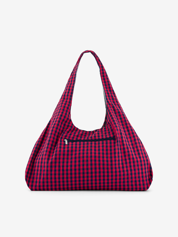 Nibelle small-capacity shopping bag with an adjustable handle. It features three pockets: a large zippered pocket, a front zippered pocket, and an interior zippered pocket. Magnetic closure for added convenience.