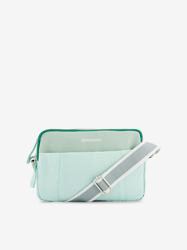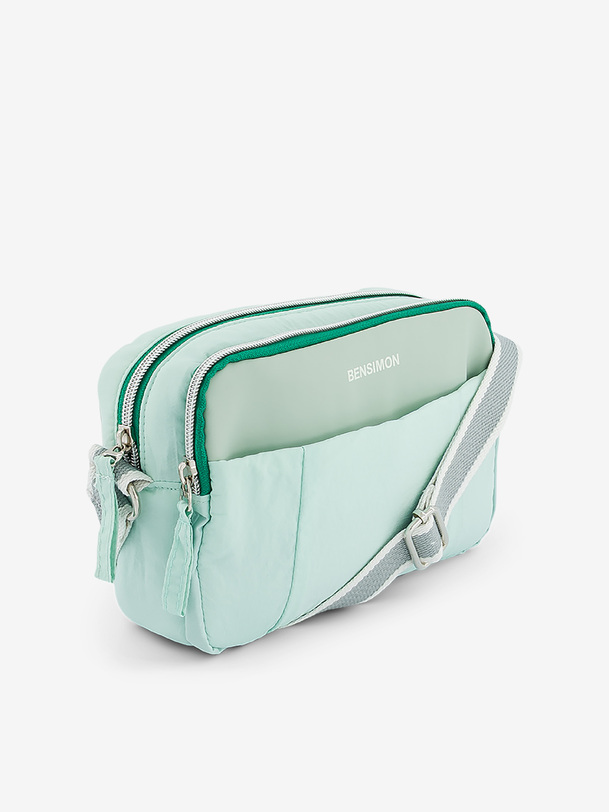 Nola crossbody bag with a large zippered pocket and a front patch pocket. Interior zippered pocket. Practical zipper closure. Dimensions: L. 21.5 cm x W. 8.5 cm x H. 14.5 cm.