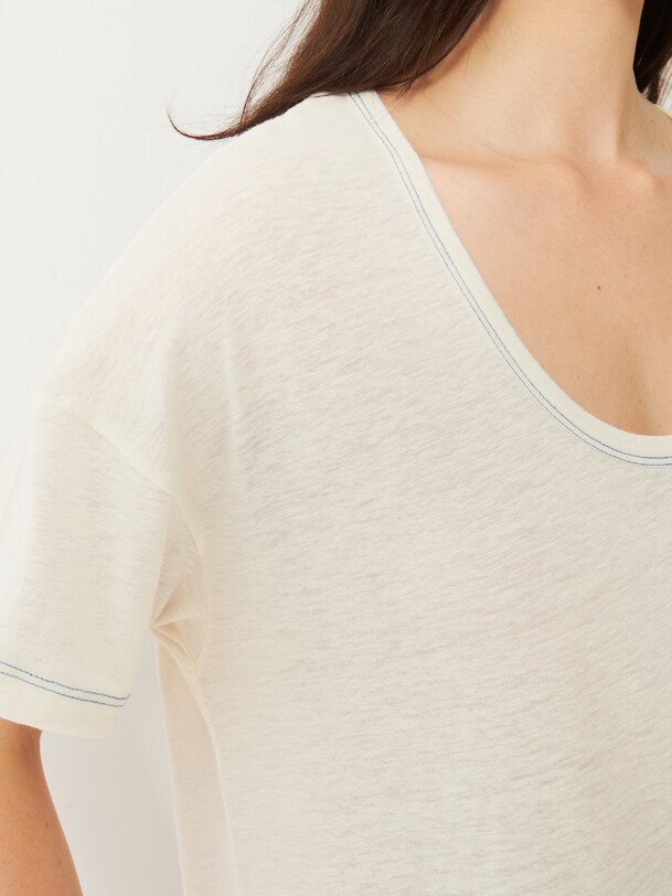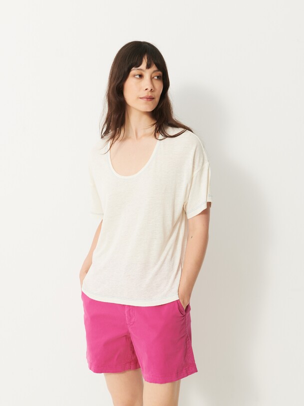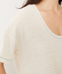 The Novak T-shirt is a wardrobe essential, featuring short sleeves and a round neckline. It has a low armhole and contrast stitching.