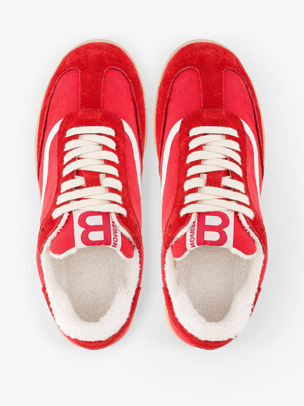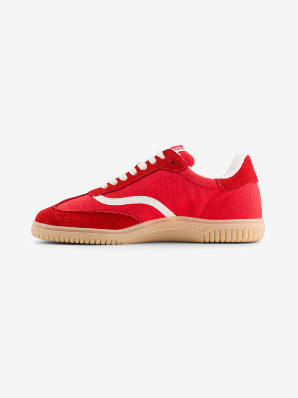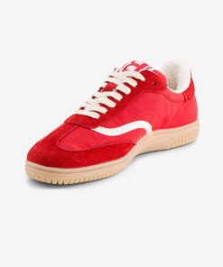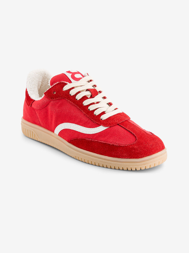 A nod to old-school style with a touch of power. The red and white version of the Vintage sneakers focuses on intensity. Suede leather, textured canvas, and a rubber sole create a silhouette inspired by retro sports models, twisted by clean lines and a strong graphic contrast. Wear with raw denim, a monochrome outfit, or canvas overalls.