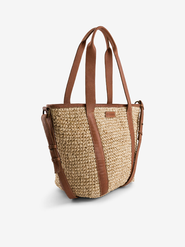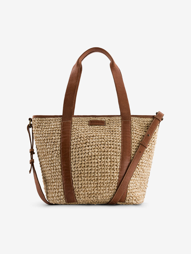 Nellora bag Medium capacity handbag with an inside zipped pocket. Adjustable and removable handle for carrying in the hand or on the shoulder. Length: 45 cm. Width: 22.5 cm. Height: 22.5 cm. Secure closure with magnetic button.