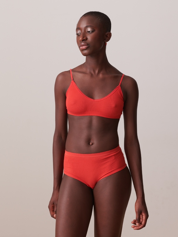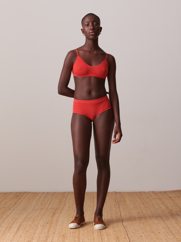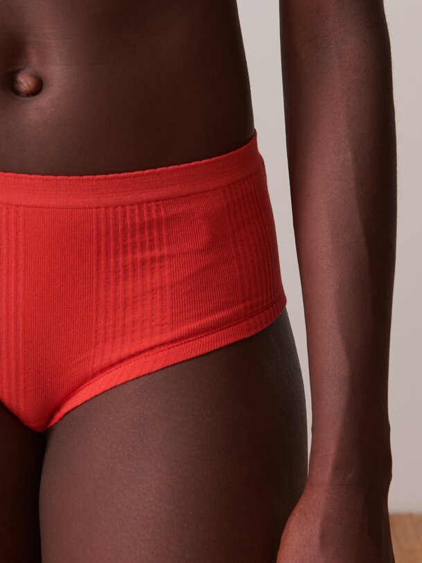 Low-rise ribbed shorts. The ribbing is arranged diagonally for a graphic effect.