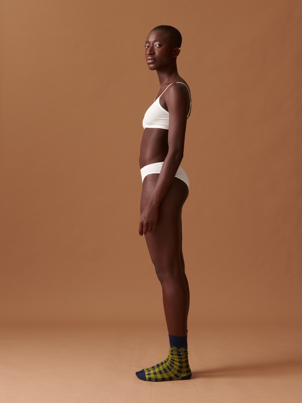 These checked socks reinterpret the vichy motif with finesse: a knit made mainly from cotton for a soft, breathable feel, a comfortable ribbed cuff and a reinforced heel for lasting wear. Easy to style — under a skirt, with sneakers or tucked into boots — they bring a graphic, colourful touch true to the Bensimon spirit.