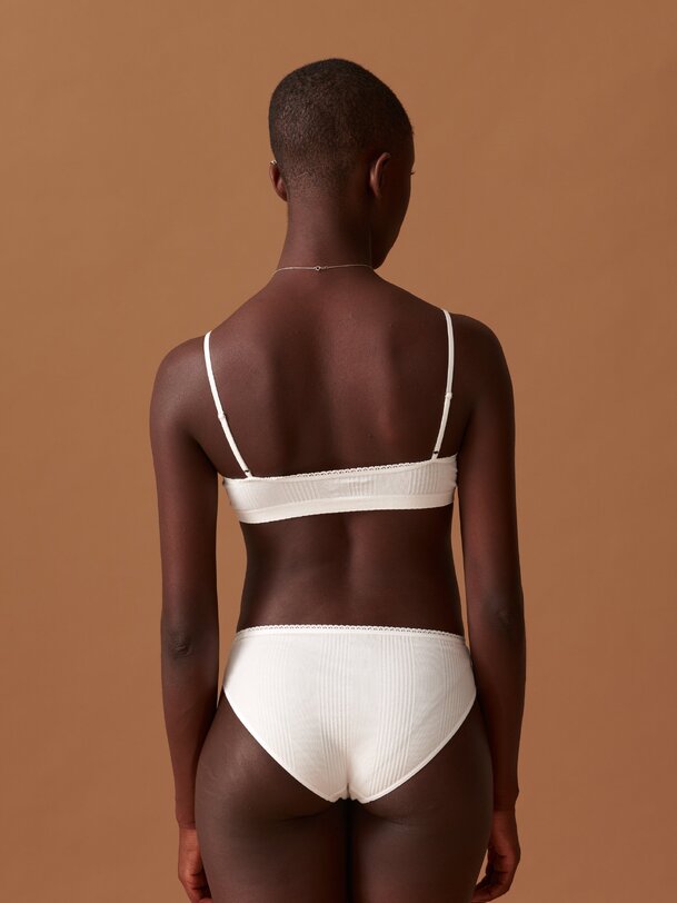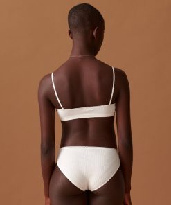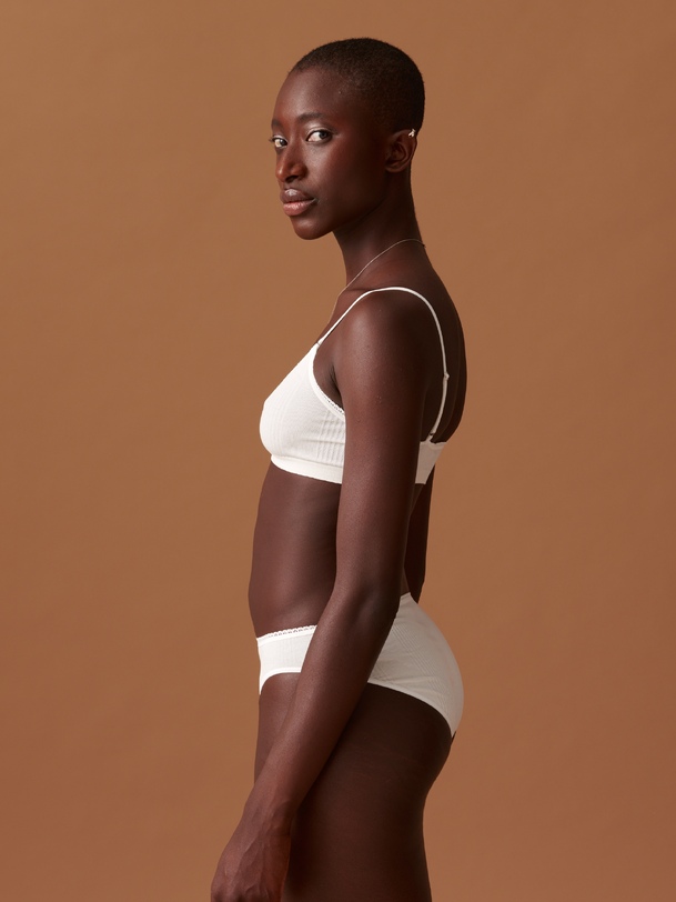 This ribbed knickers blend comfort and style seamlessly. They feature an elasticated waist adorned with a delicate scalloped edge. The diagonal ribbed patterns add a unique touch.