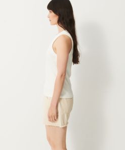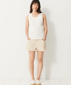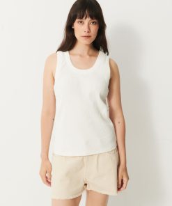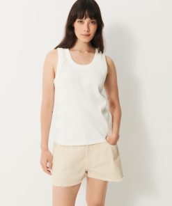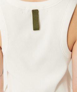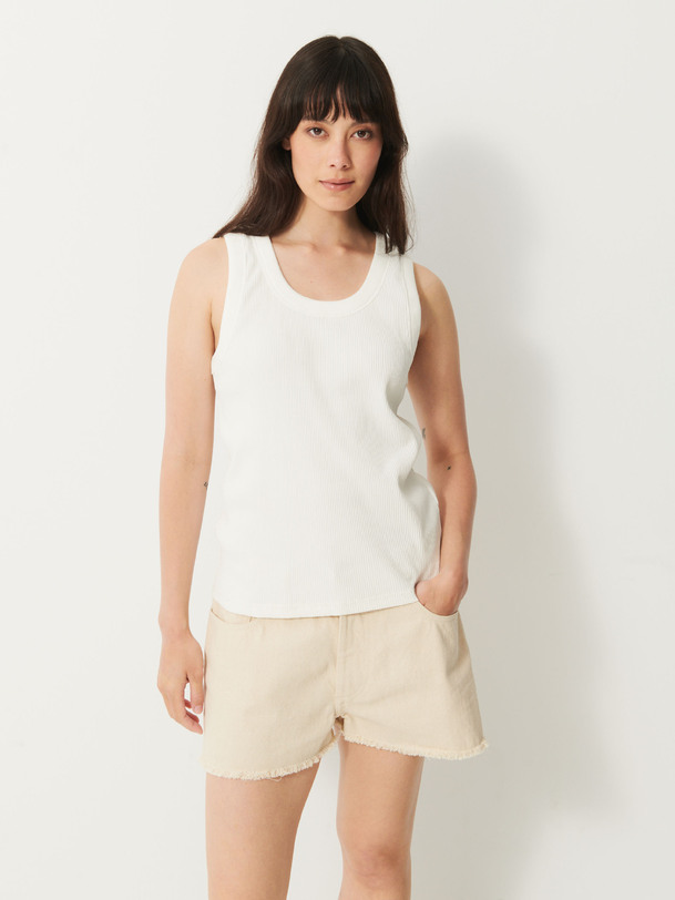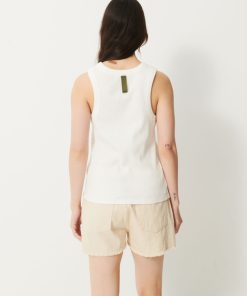 A fitted tank top in cotton with a hint of elastane for added comfort. Ribbed texture, rounded neckline, and a signature back detail — a khaki tab inspired by military uniforms. Minimal, structured, easy to wear. Part of the BENSIMON ÉDITION capsule designed with Arthur Robert, this piece updates a classic with a subtle army touch.