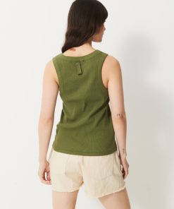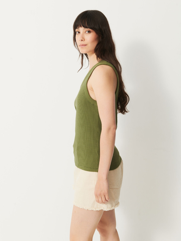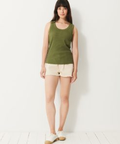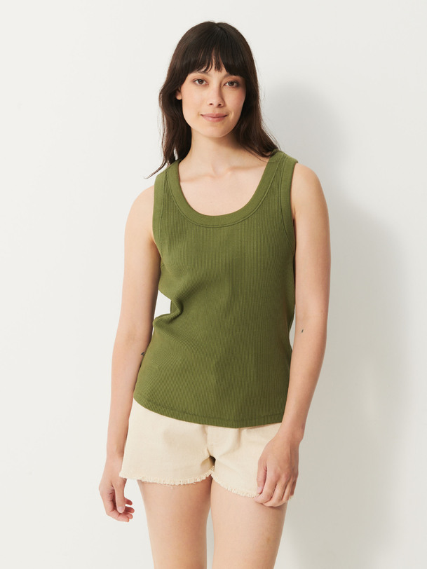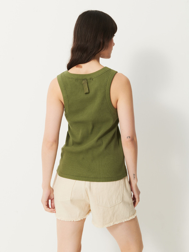 A fitted tank top in cotton with a hint of elastane for added comfort. Ribbed texture, rounded neckline, and a signature back detail — a khaki tab inspired by military uniforms. Minimal, structured, easy to wear. Part of the BENSIMON ÉDITION capsule designed with Arthur Robert, this piece updates a classic with a subtle army touch.